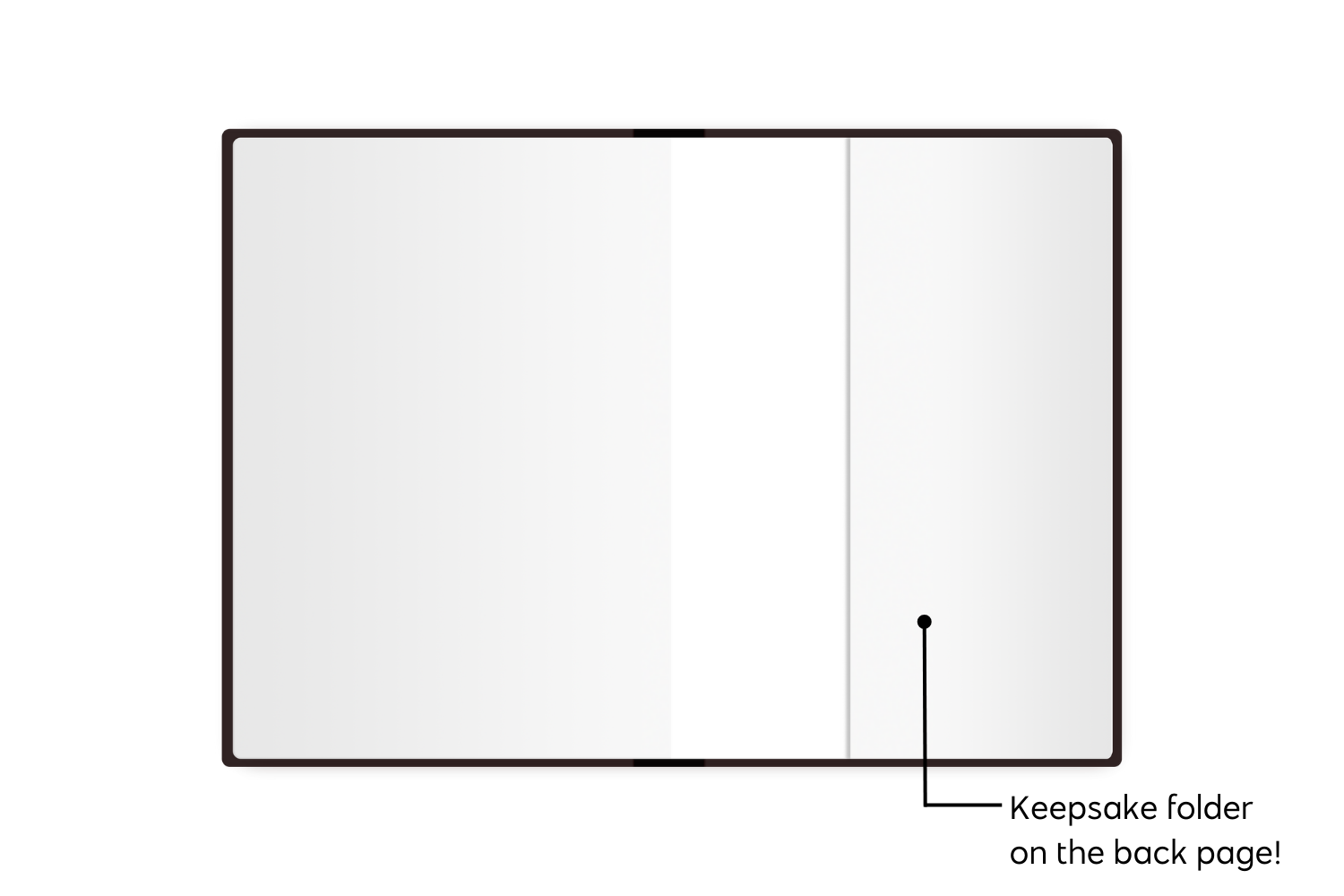 In the back, we added a folder for all your special keepsakes—whether it’s postcards, stamps, concert tickets, receipts, or anything else you want to save.