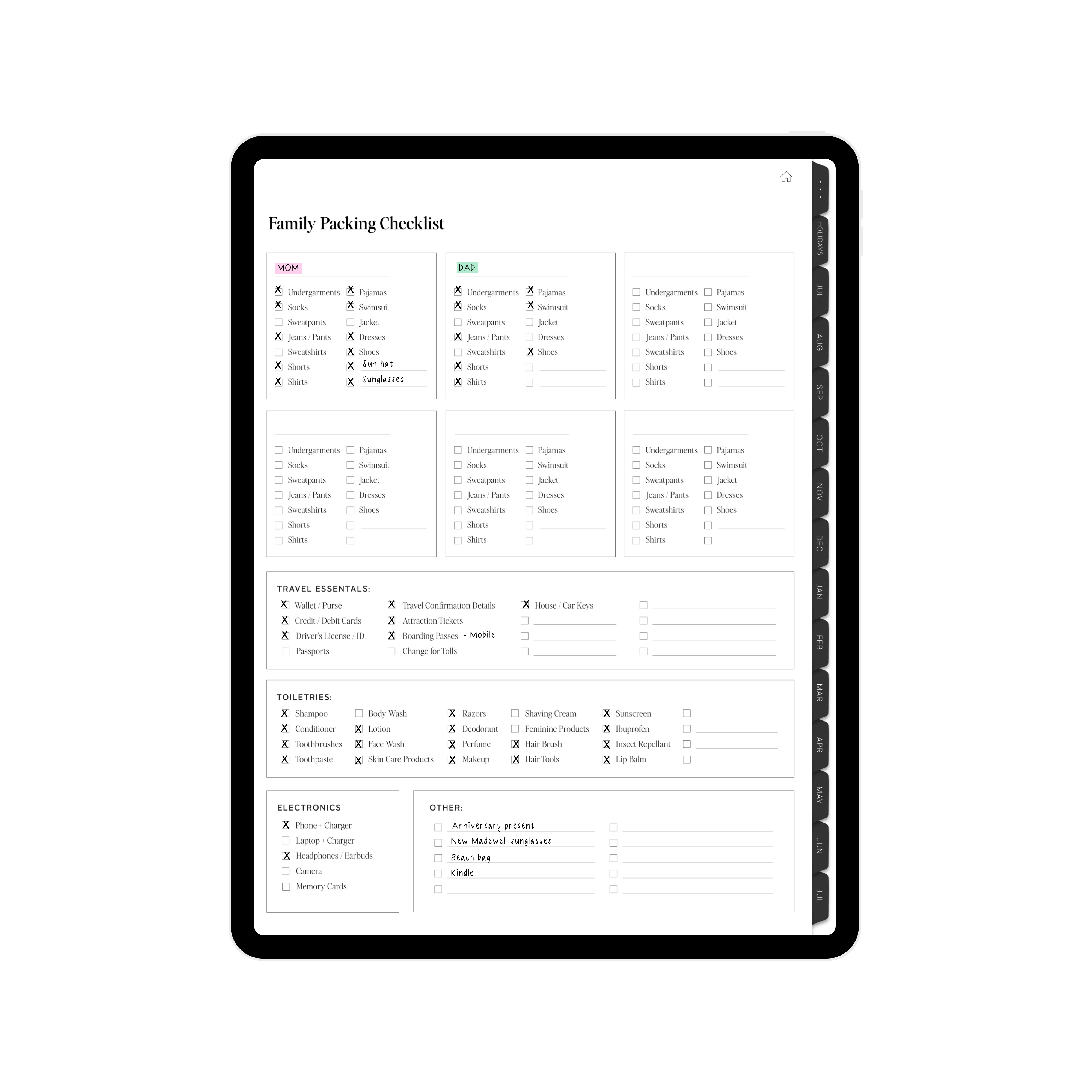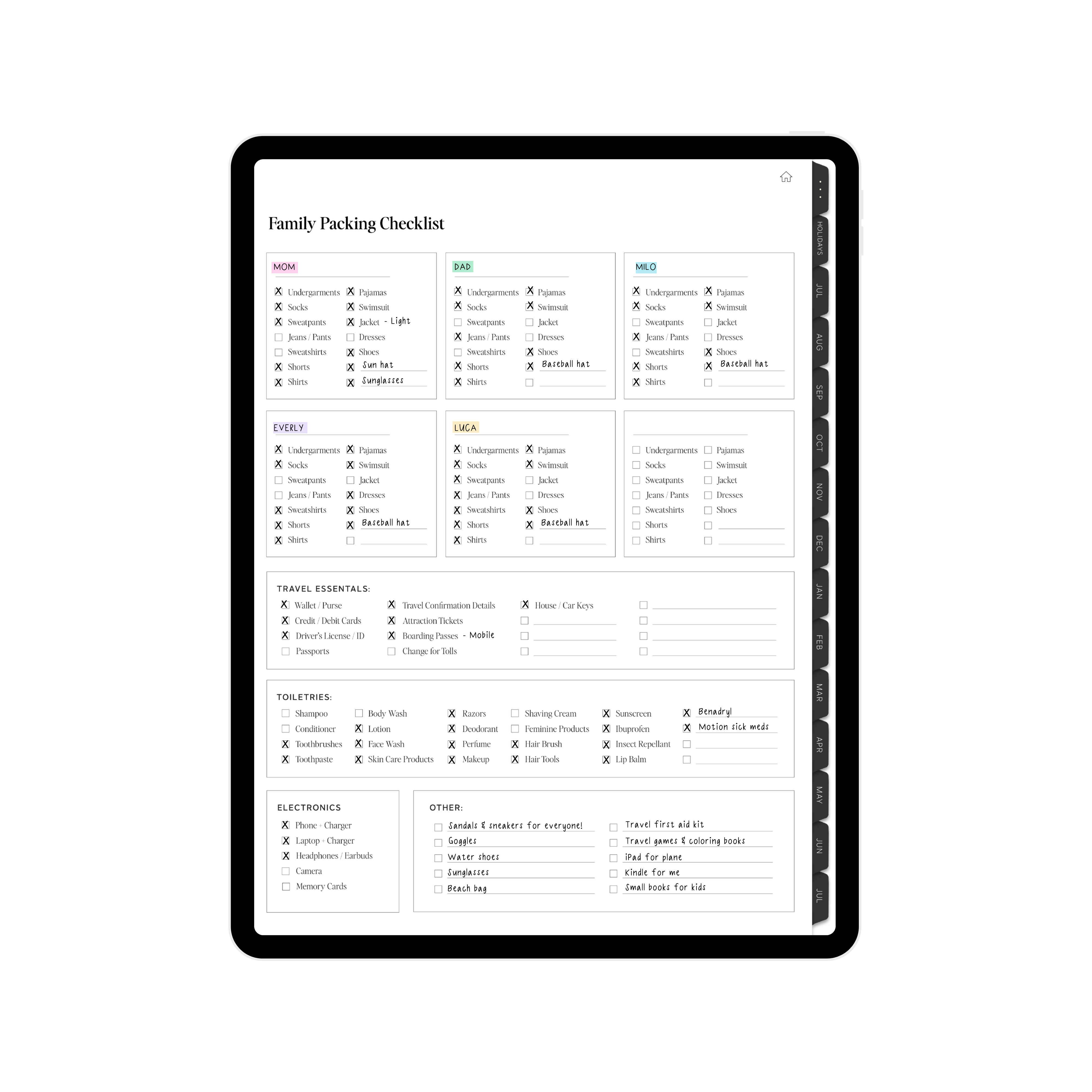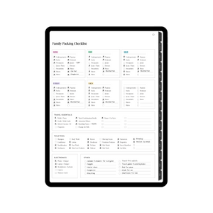 • Travel Plan + Family Packing List Organizer