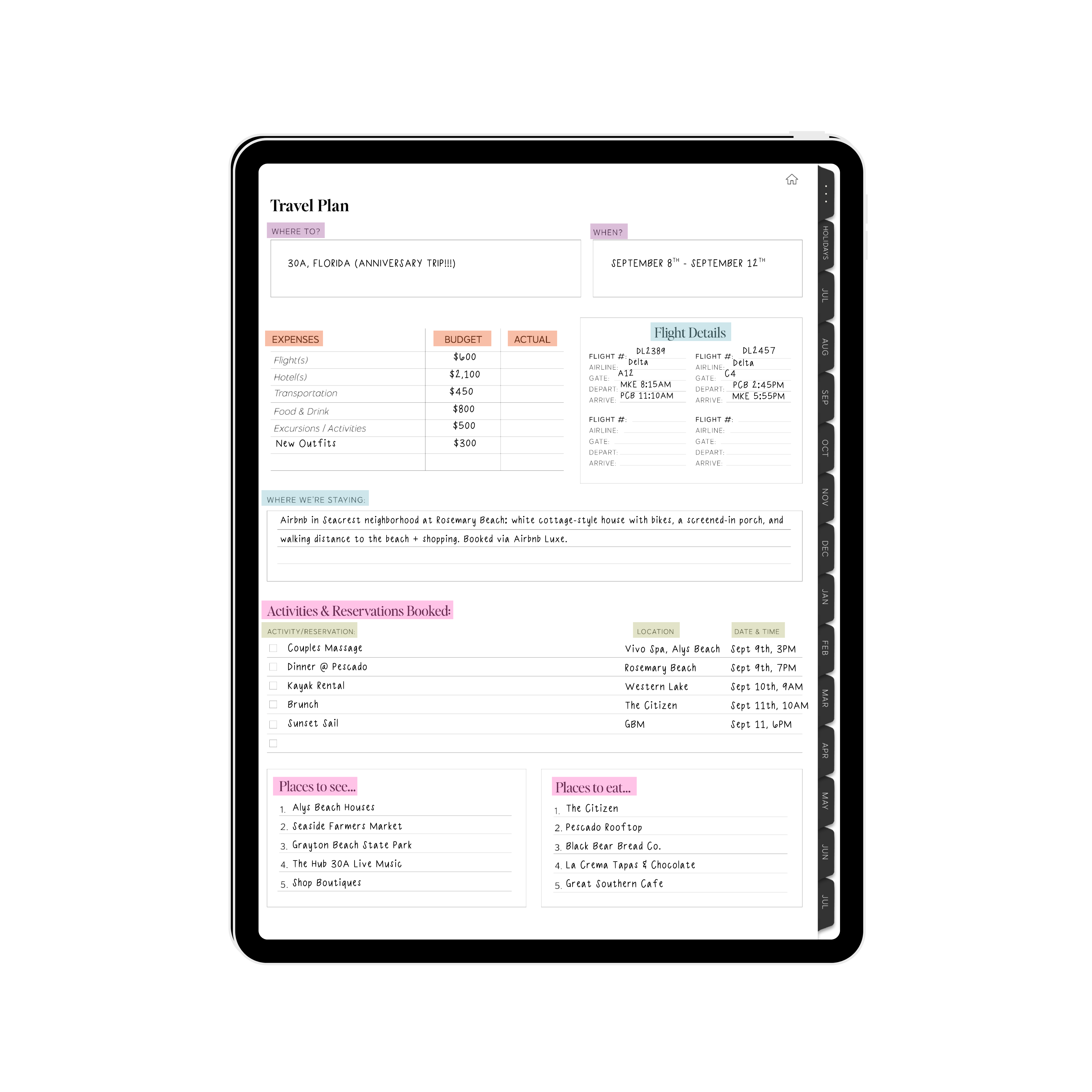 Flip through a filled out version of this planner for inspiration. Click to expand and get a closer look.