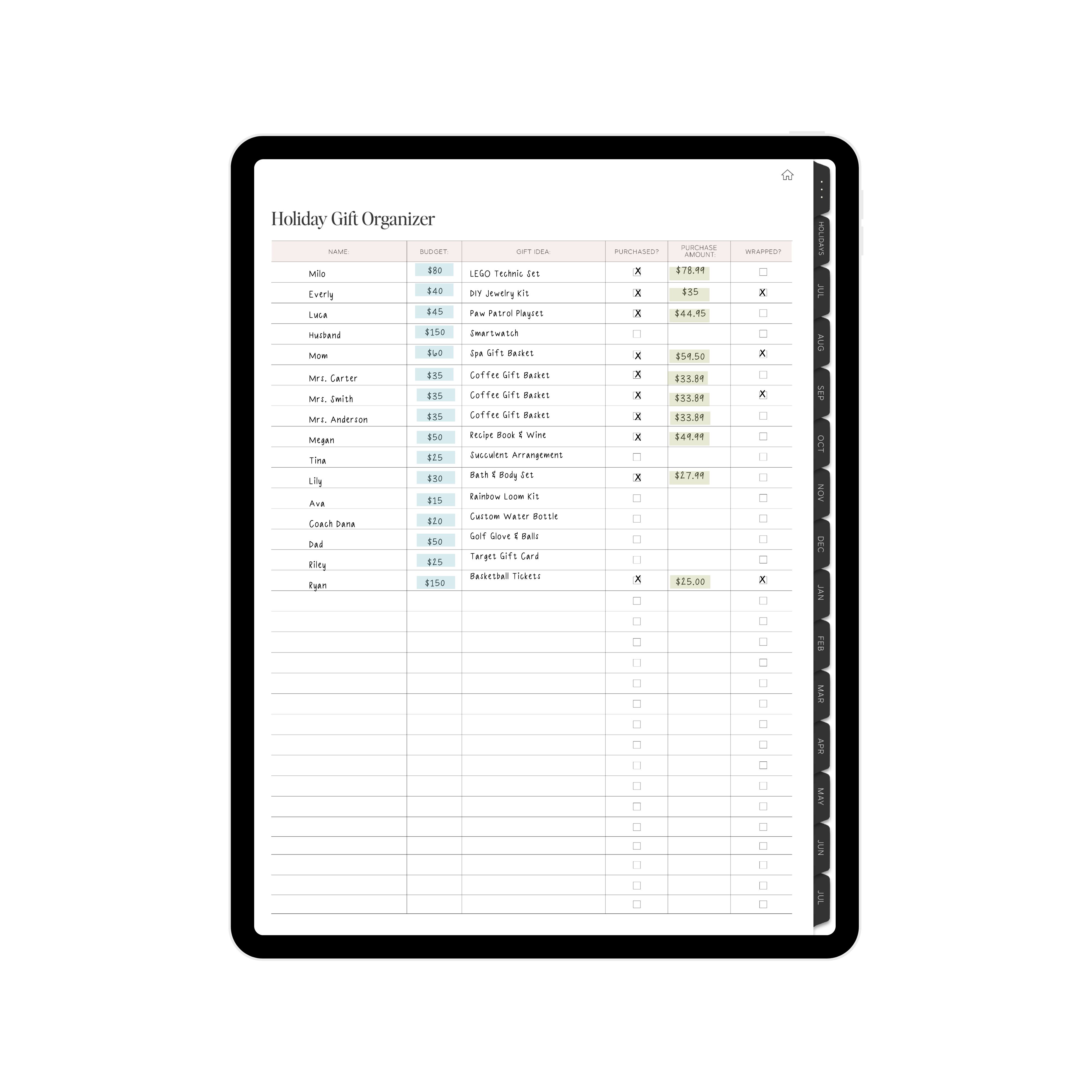 • Holiday Gift List Organizer