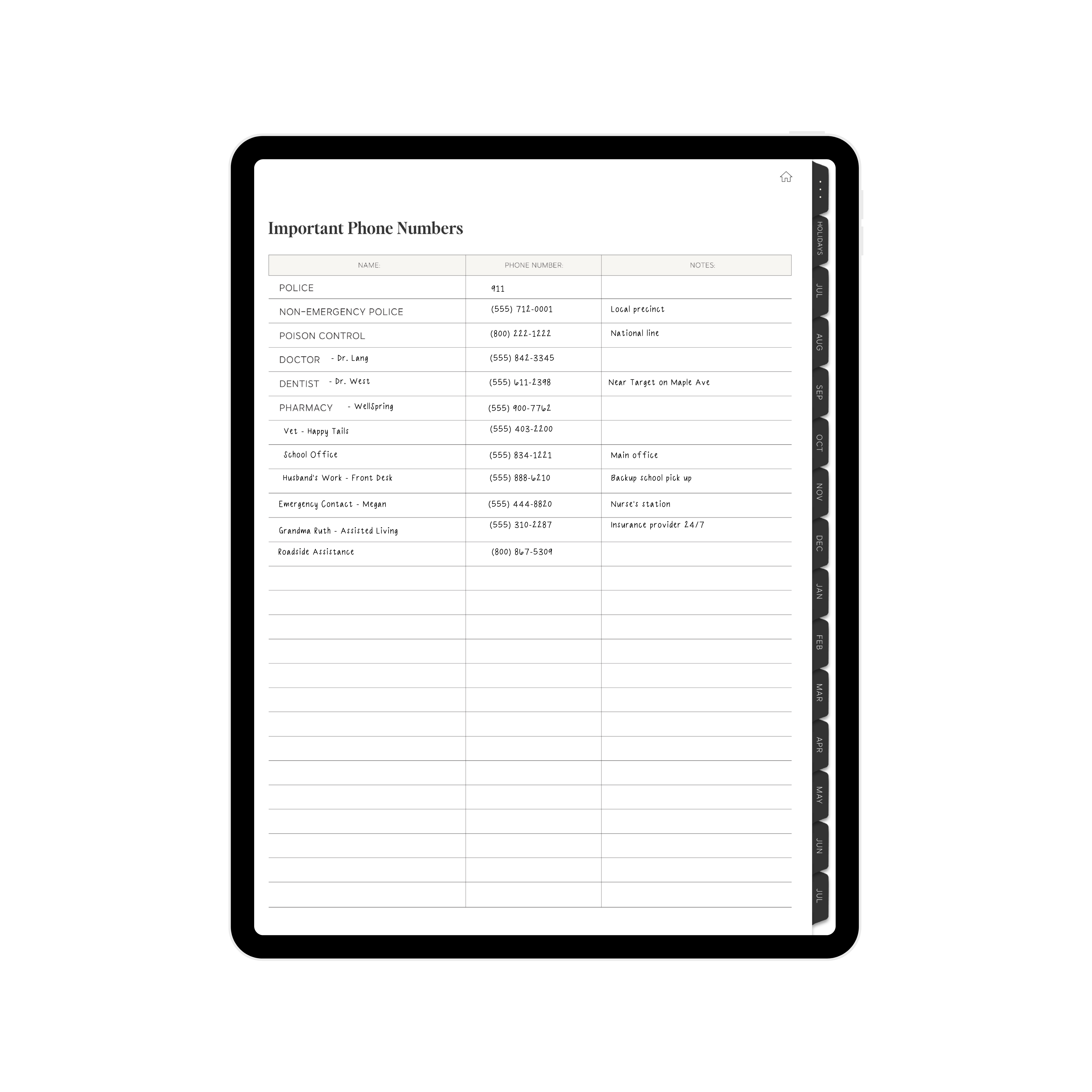 • Important Phone Numbers List