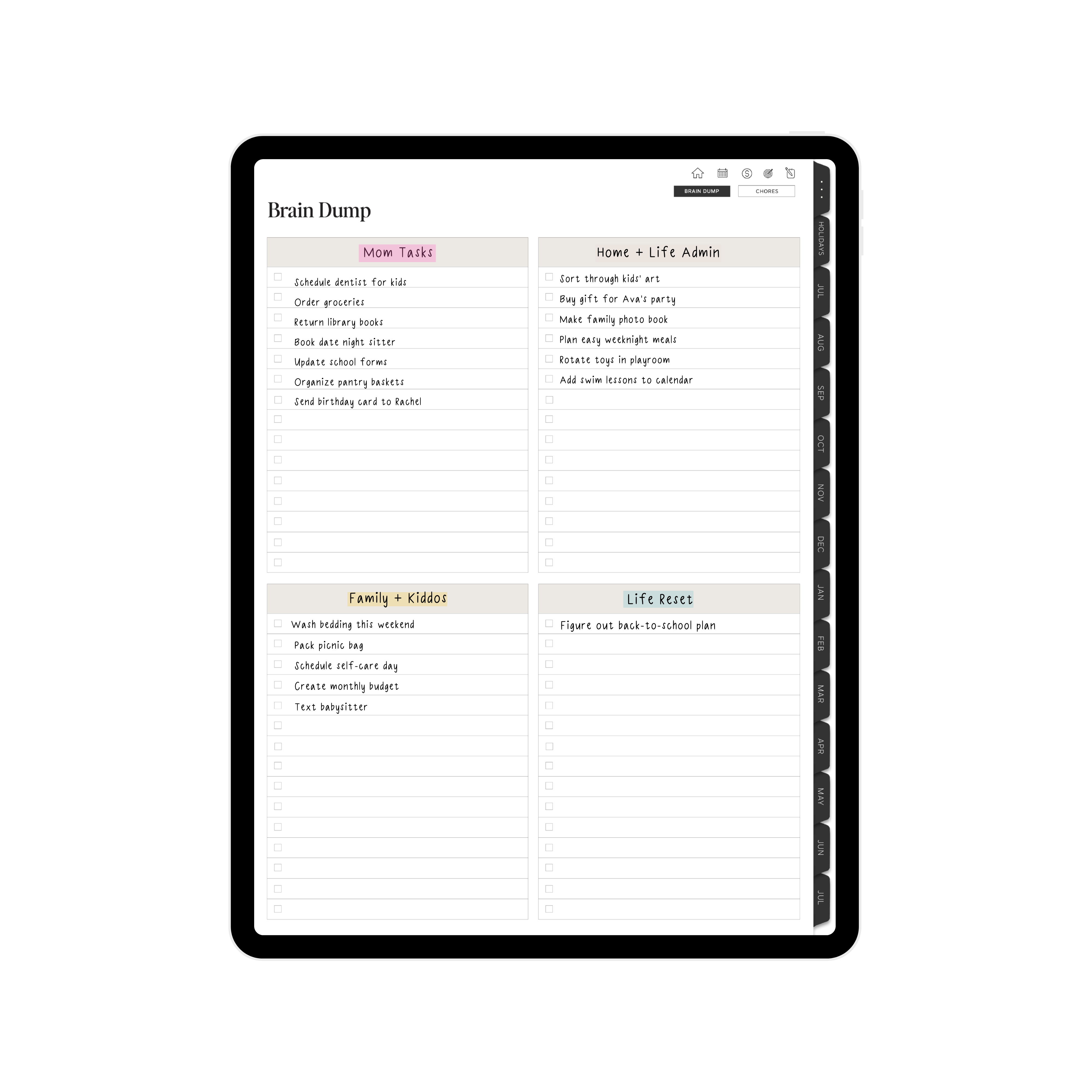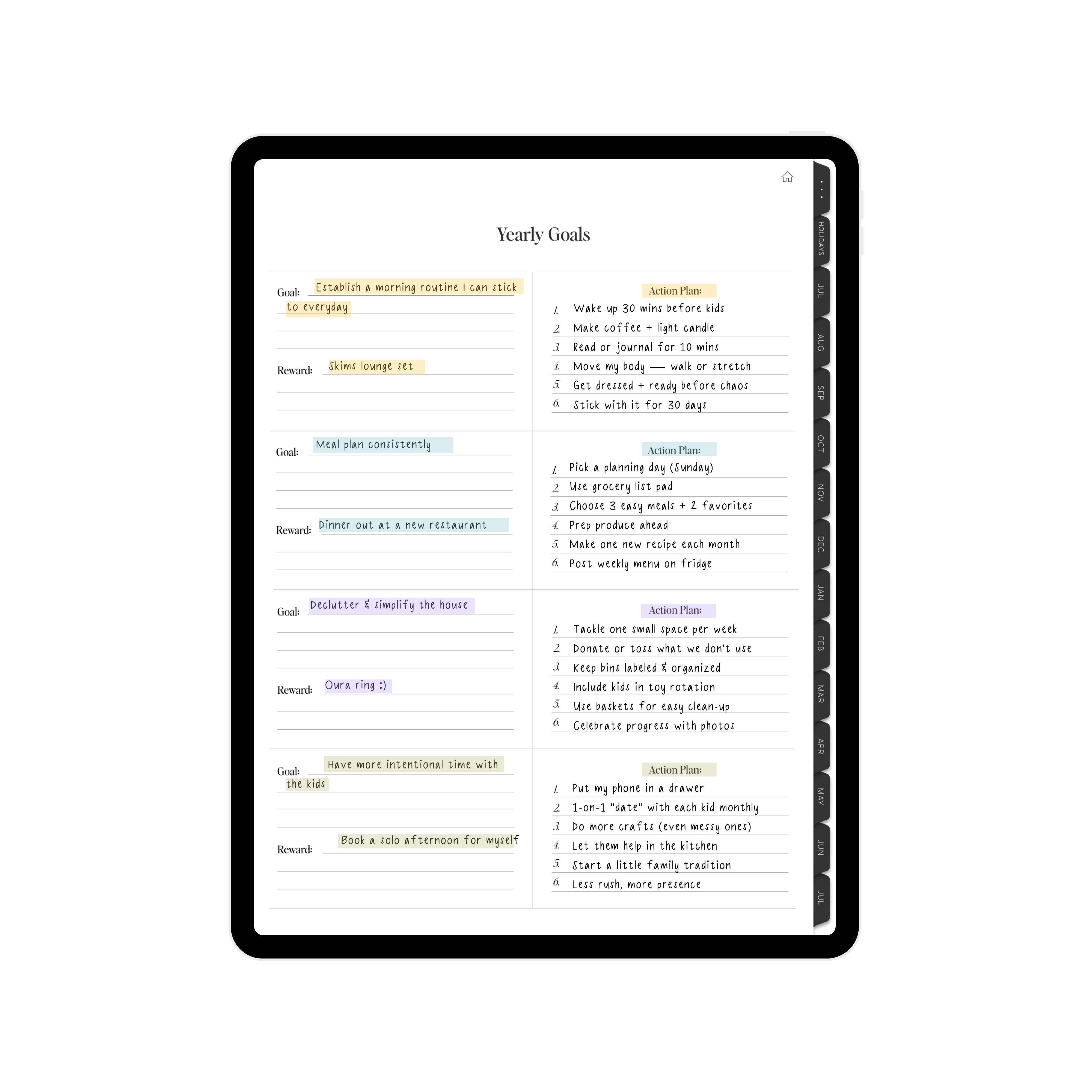 Inside our Digital Planner for Moms, you’ll find 500+ unique organization sheets that cover everything from your daily life to your 5-year plan. We have thought of EVERYTHING!