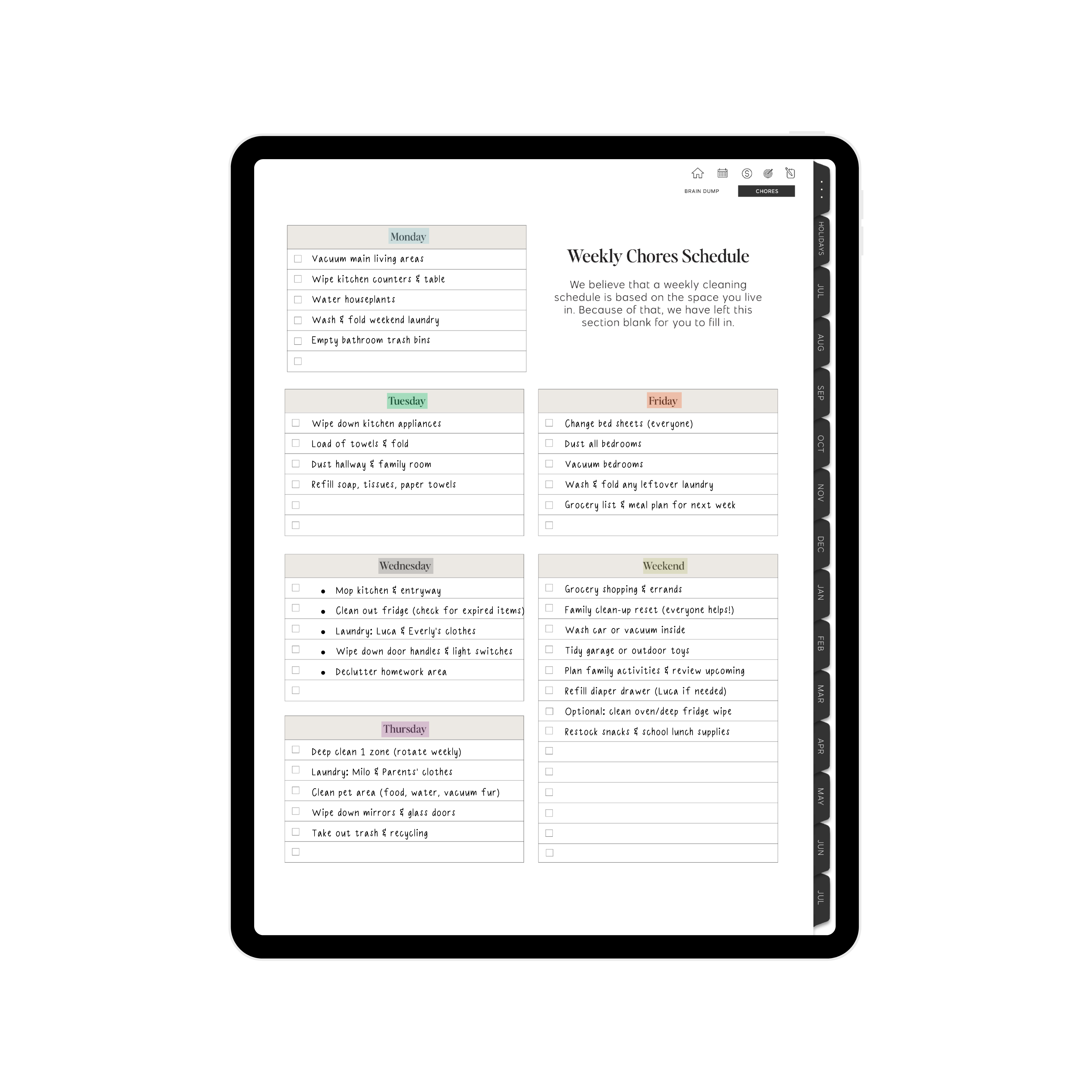 • Weekly Chores Checklist