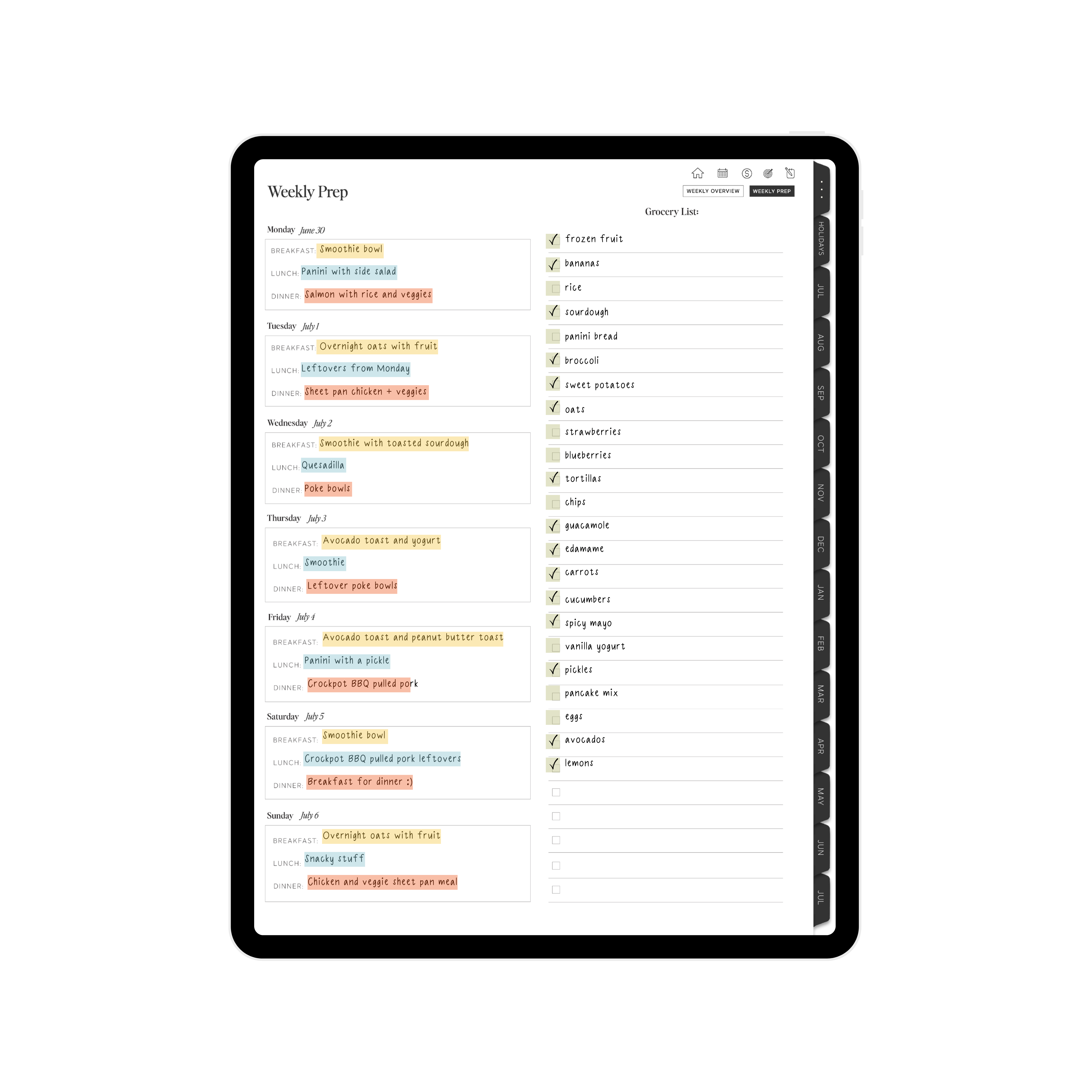 • Weekly Grocery List