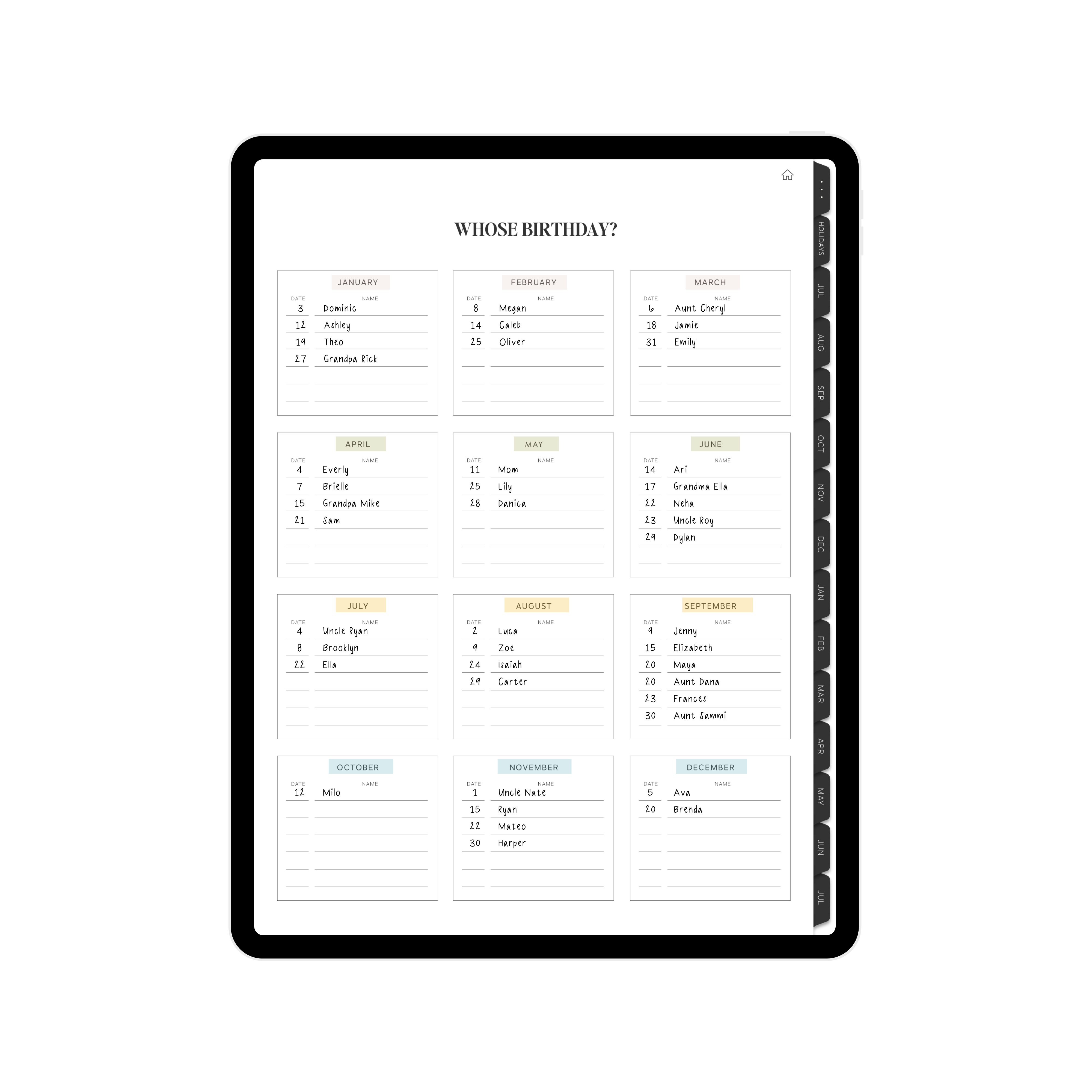 • Birthdays