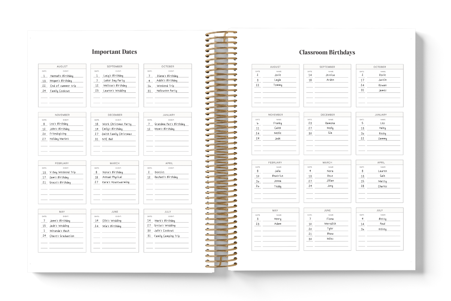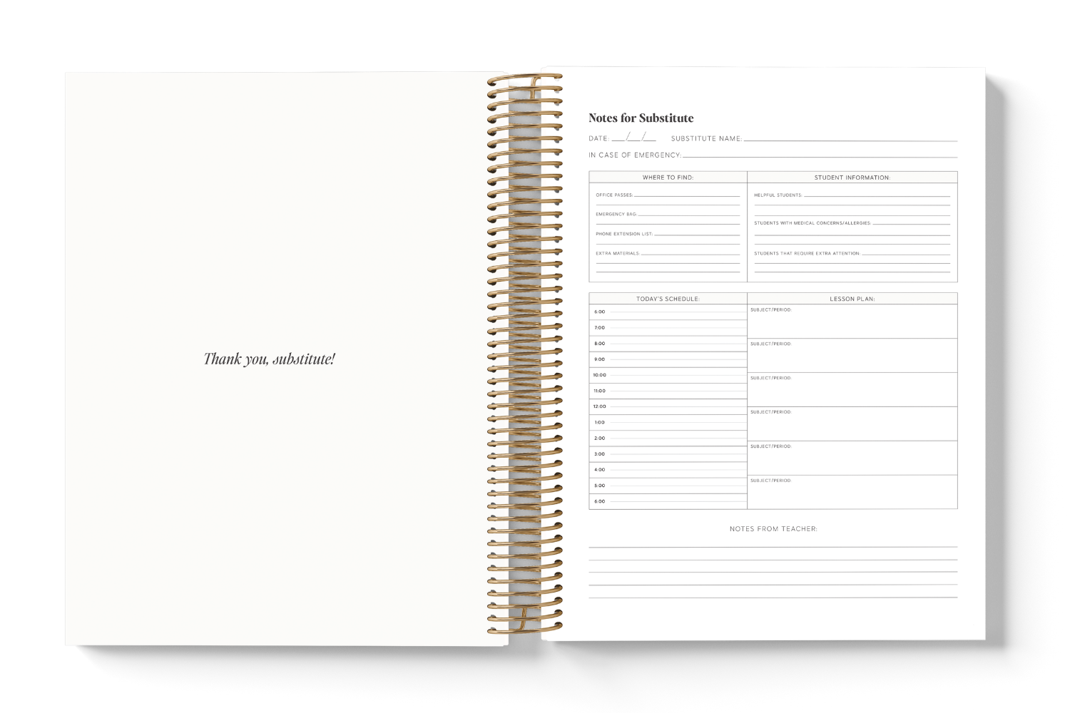 | Features | Tons of teacher-specific pages to keep you as organized as possible, including class schedules, weekly lesson planning, notes for substitutes, and more. | It does not include some of the standard organization pages that you'll find in the standard Daily Planner, like our travel planner, packing checklist, usernames and passwords, and gift organizer. | We kept the most-loved Daily Planner pages and added classroom-specific organization pages. | |