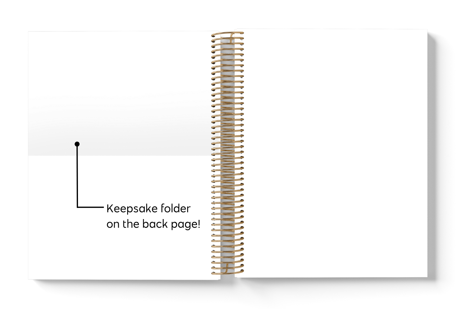 We also added a built-in bookmark so you can quickly jump back to where you left off, and in the back, there’s a folder to hold any loose papers, notes, or important documents.